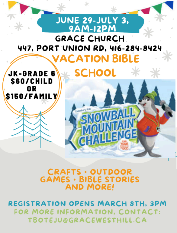 A full kids ministry program is offered for all children from nursery through Grade 8 (a.k.a. Sunday School). Children initially join their caregivers in the service, and are dismissed to Sunday school part way through the service.
